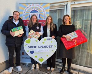 Von links nach rechts: Stefan Unucka (Leiter Betrieb Augsburg), Tanja Schnepp (Vorsitzende Verein Kinderweihnachtswunsch) Aaliyah Ettenhofer (Marketing Managerin), Andrea Greif (Geschäftsleitung)