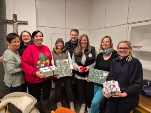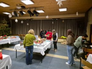 Am 28.11.2025 haben sich wieder Vereinsmitglieder, aber auch fleißige Helfer getroffen um die Geschenke, die durch Geldspenden erfüllt wurden zu verpacken.