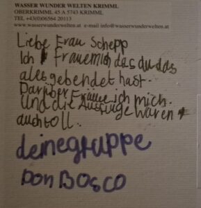 Wir freuen uns auch über Post, die wir von den Kindern/Jugendlichen im Sommer erhalten.